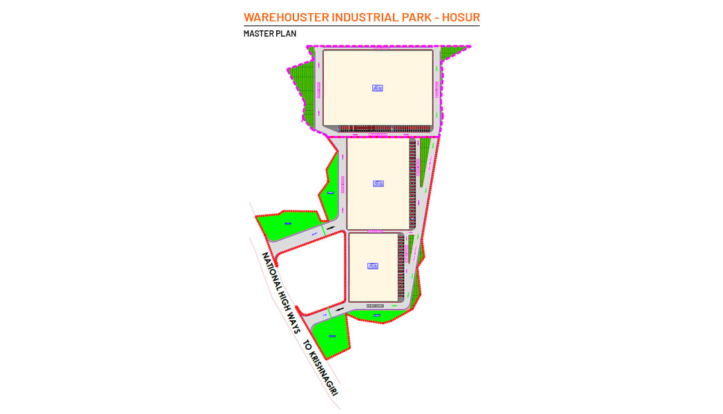 SITE : The site is located at Shoolagiri and is well connected to Bangalore city. The park is to be developed in a single phase grade A industrial development of 54 acres. Shoolagiri /Hosur is located approx. 40 kms from Bengaluru City and acts as a satellite industrial town to Bengaluru. This integrated logistics park will be developed in a single phase and is built to suit agreements with grade A tenants.